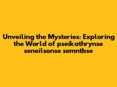 Unveiling The Mysteries: Exploring The World Of Pseikathrynse Seneilsonse Semntbse
