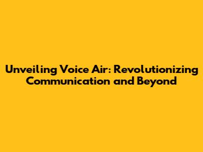 Unveiling Voice Air: Revolutionizing Communication And Beyond